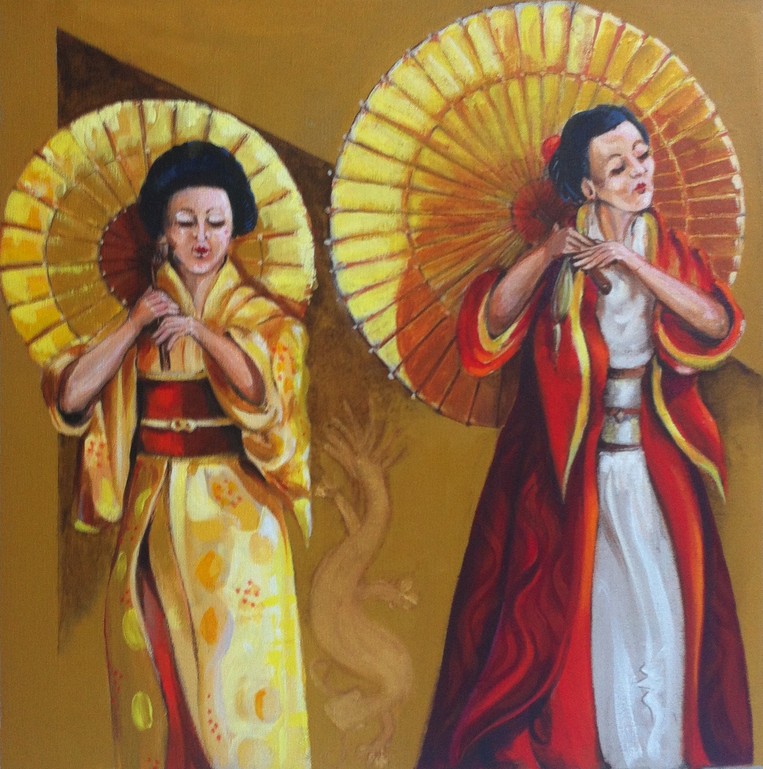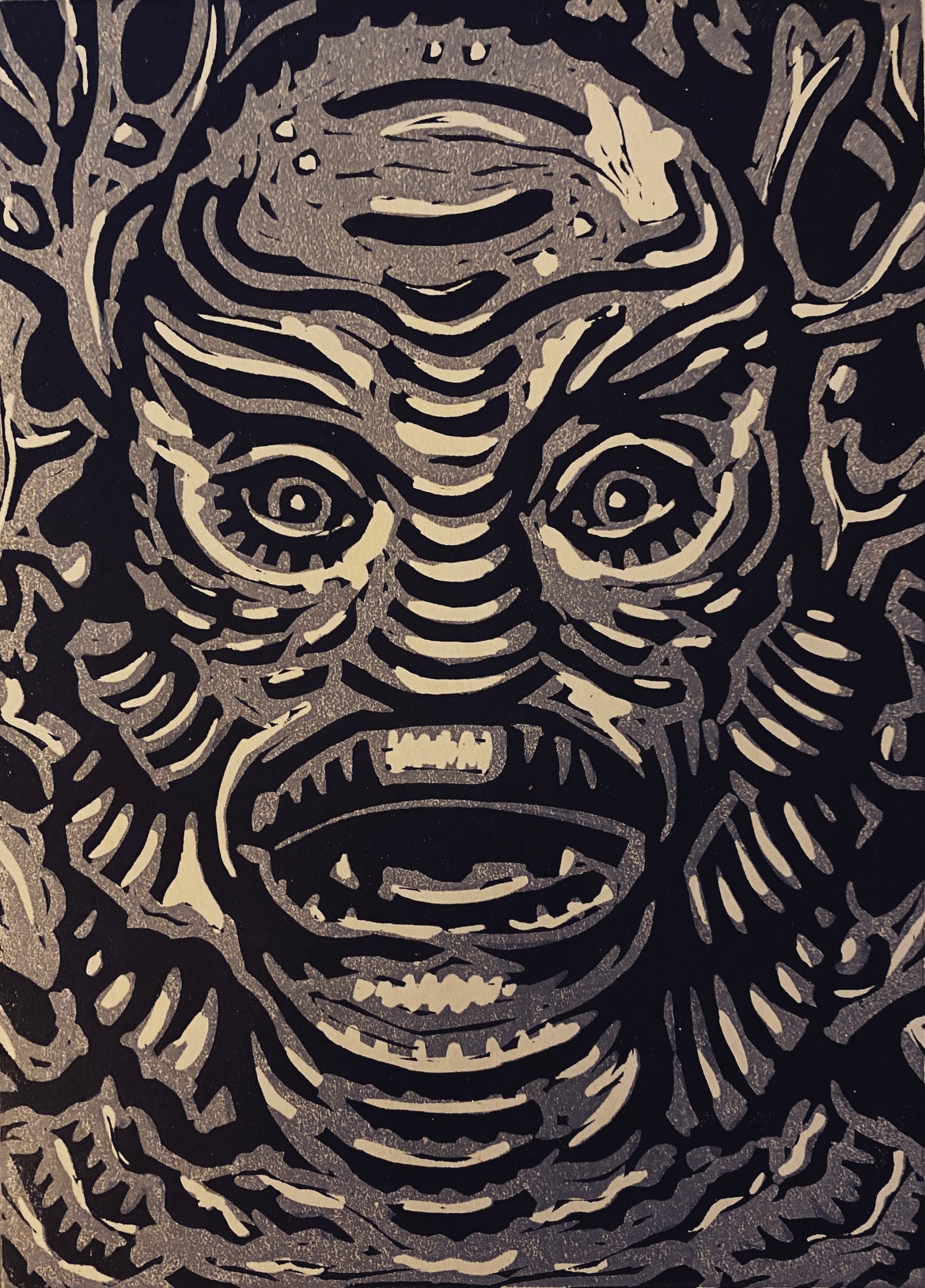 been exploring Japanese woodblock techniques and is incorporating these