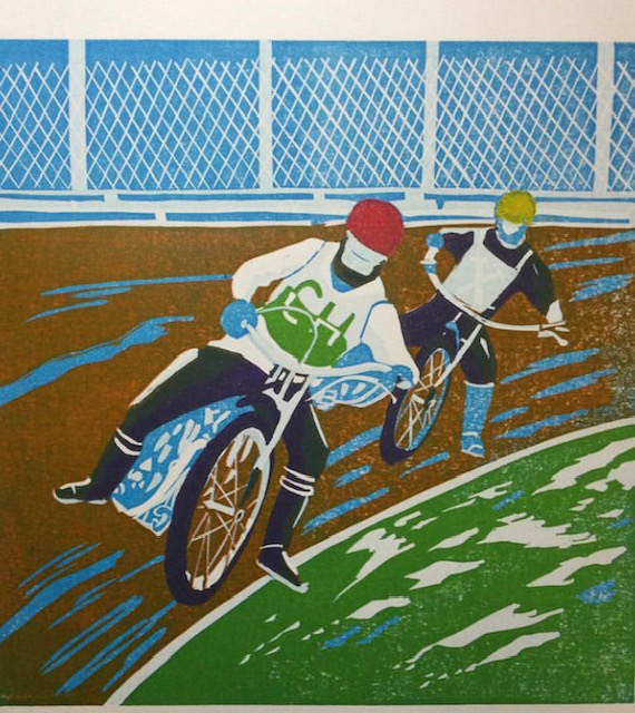 involve risk taking and experimentation with a view to development.Andrew’s print making is reduction lino, block lino and dry point