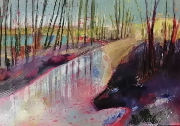 I mostly work with acrylics, inks and pastels.